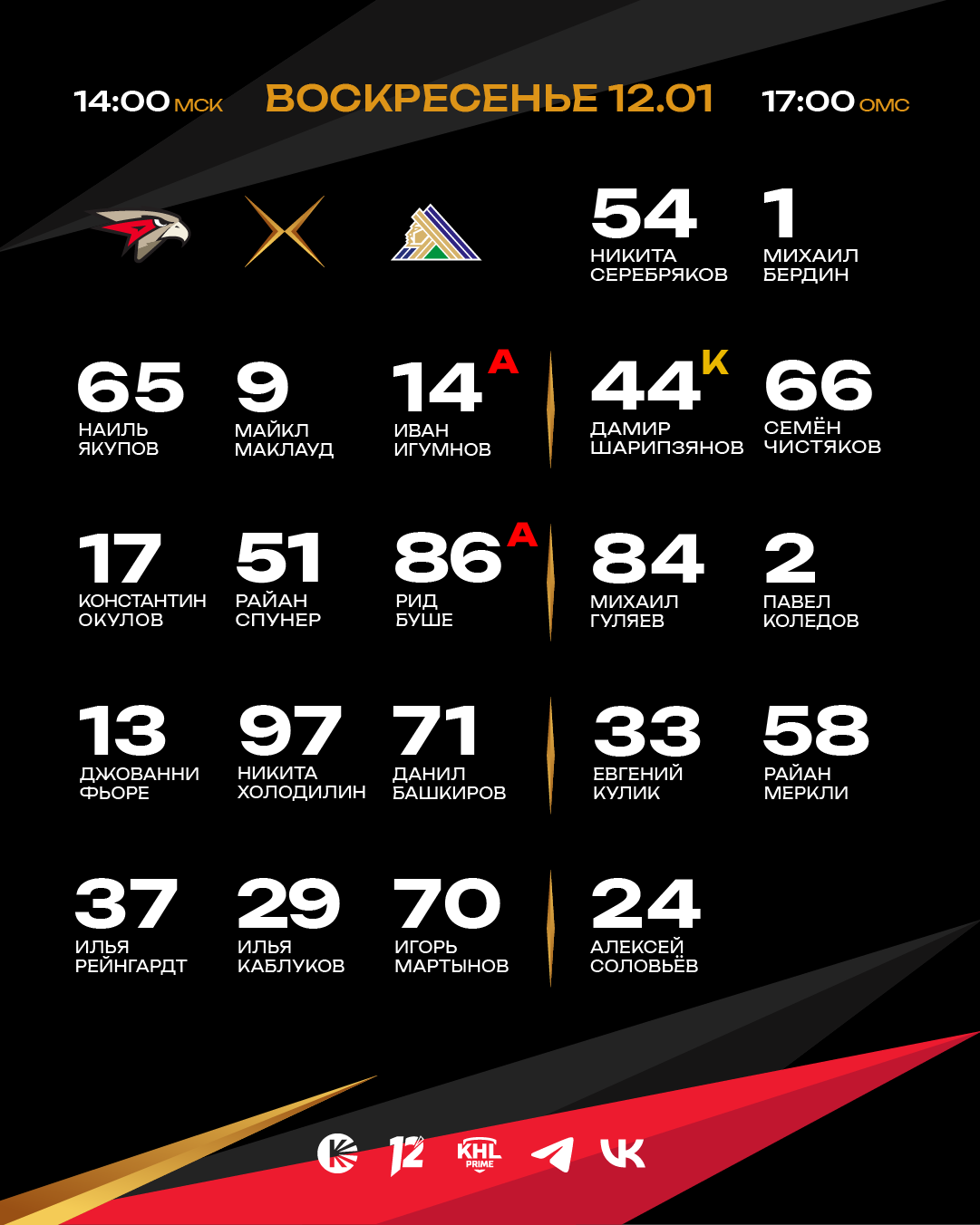 Встреча на G-Drive Арене начнётся в 17:00 по омскому времени (14:00 по московскому времени). Прямую трансляцию смотрите в эфире телеканала KHL Prime и омского «12 канала».