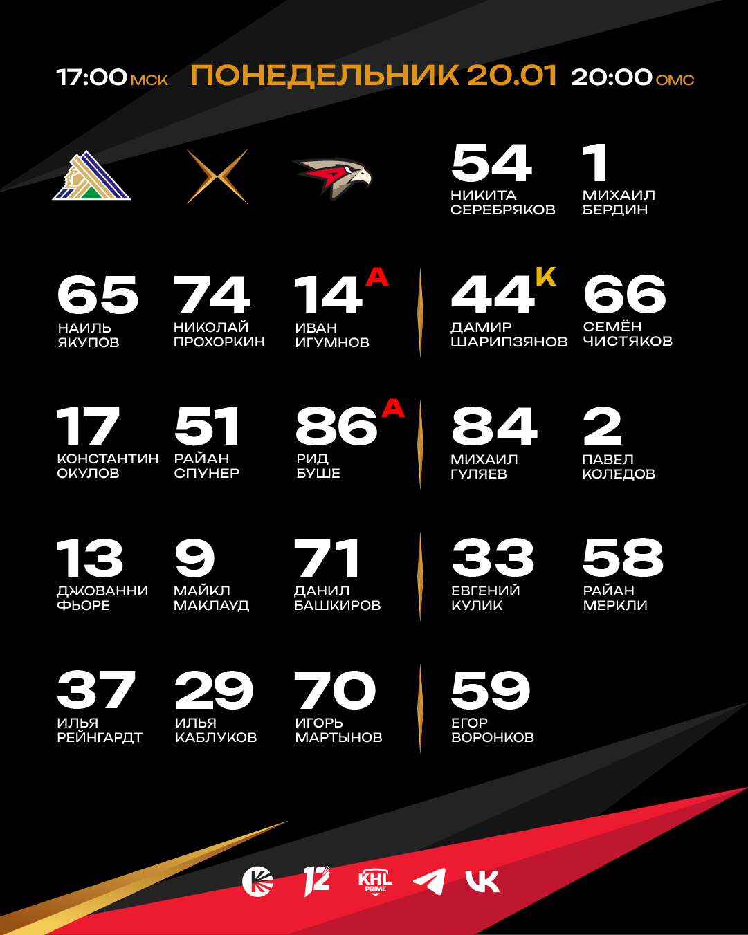 Состав «Авангарда» на выездной матч против «Салавата Юлаева»