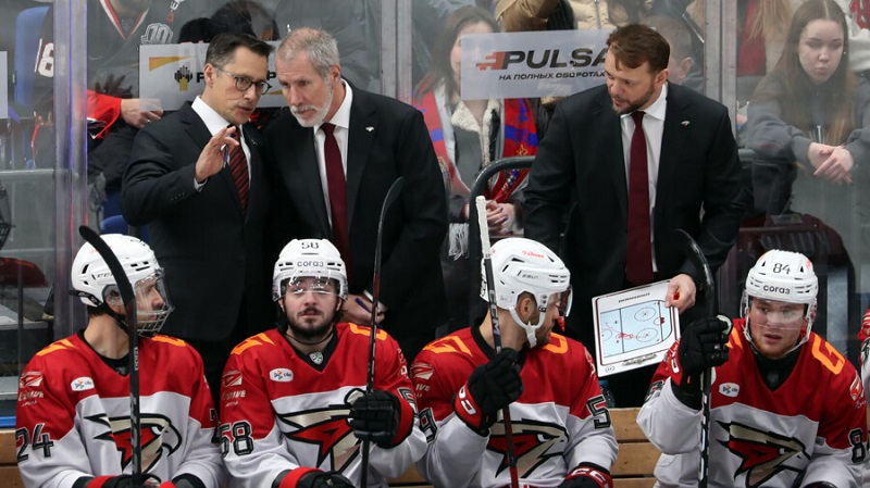 Ги Буше (слева) и тренеры «Авангарда» / Фото: © Дмитрий Челяпин / Матч ТВ