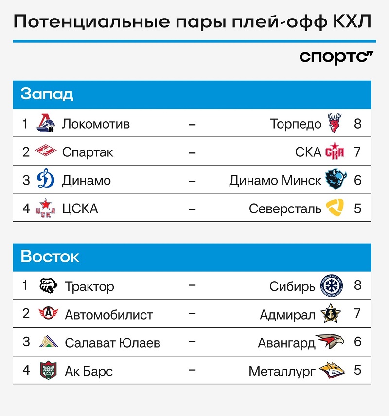 Расклады на плей-офф КХЛ: СКА выходит на «Спартак», «Салават» – на «Авангард»
