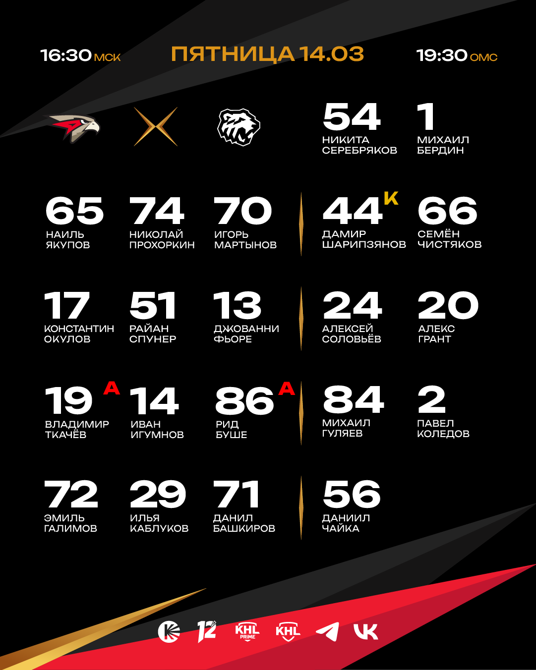 Встреча на G-Drive Арене начнётся в 19:30 по омскому времени (16:30 по московскому времени). Прямую трансляцию смотрите в эфире телеканалов KHL, KHL Prime и омского «12 канала».
