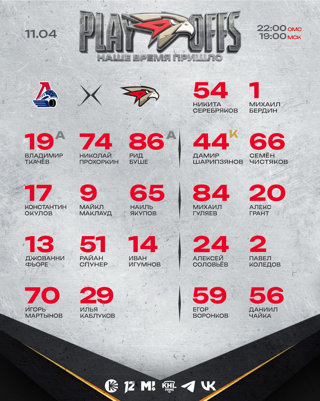 Состав «Авангарда» на первый матч серии против «Локомотива»