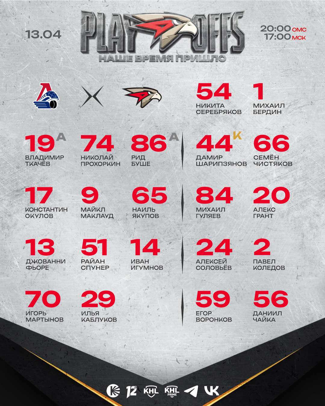 Состав «Авангарда» на второй матч серии против «Локомотива»