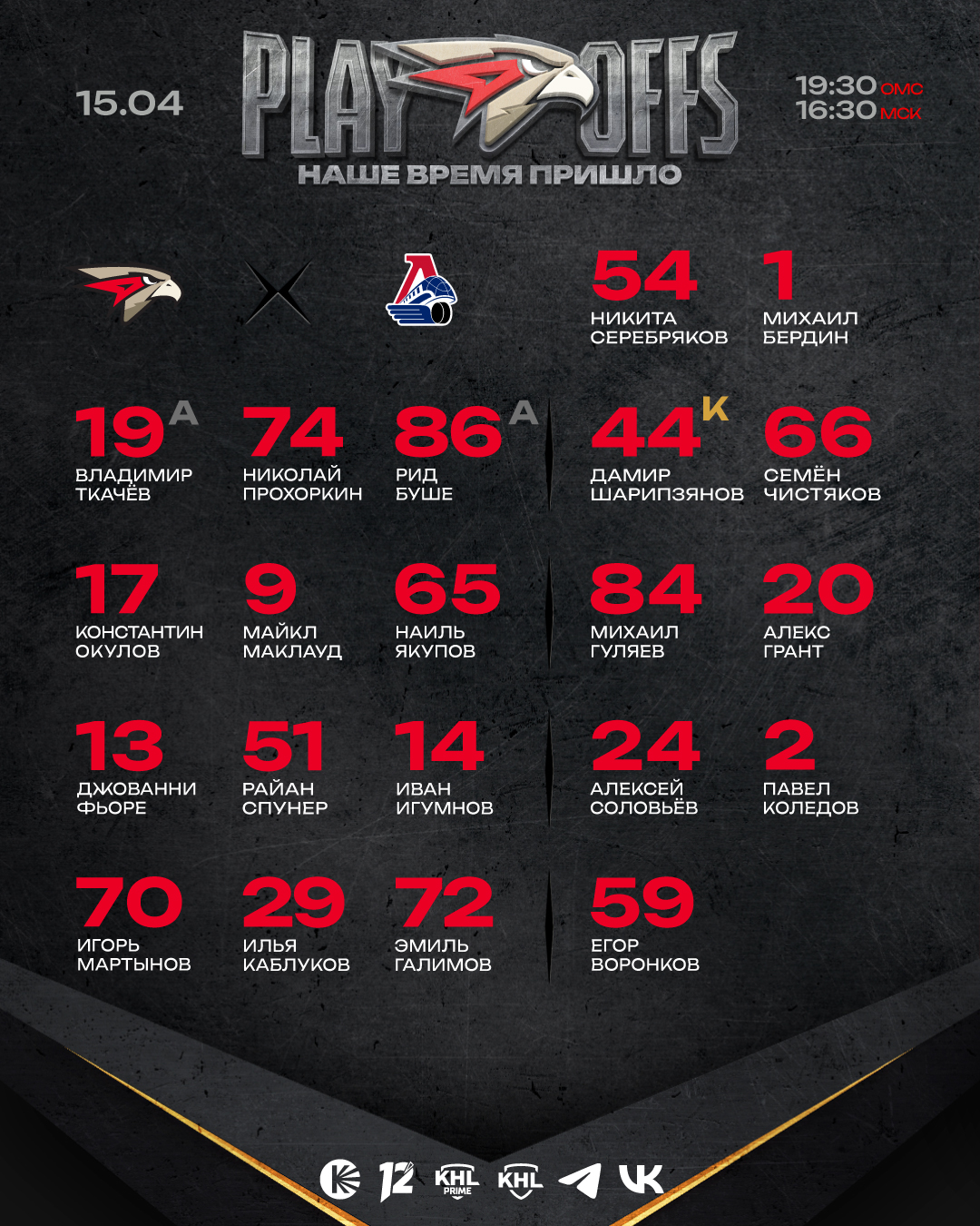 Состав «Авангарда» на третий матч серии против «Локомотива»