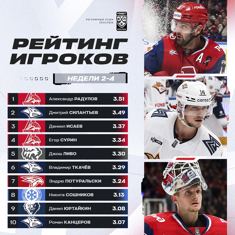 KHL.ru представляет рейтинг игроков за прошедшие три недели сезона.