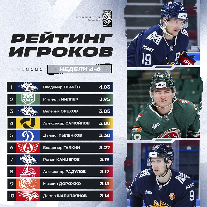 KHL.ru представляет рейтинг игроков за прошедшие три недели сезона.