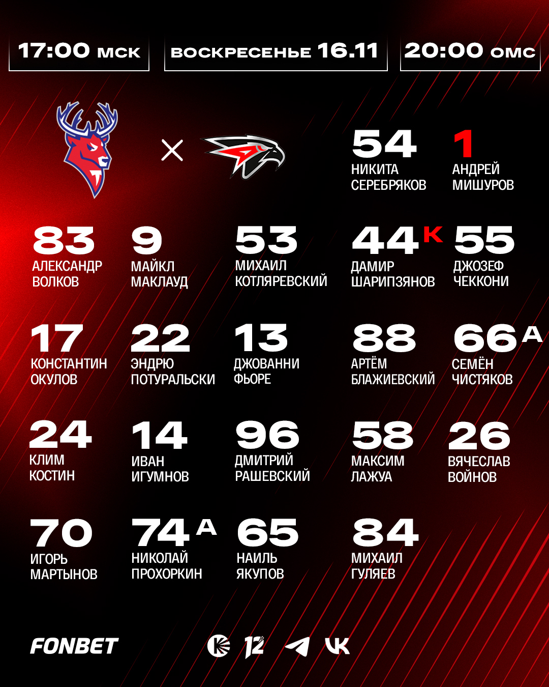 Встреча в Нижнем Новгороде начнётся в 20:00 по омскому времени (17:00 по московскому времени). Прямую трансляцию смотрите в эфире омского «12 канала» и на «Кинопоиске» по подписке «Яндекс Плюс».