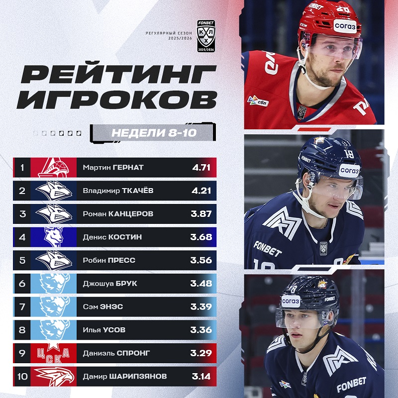 KHL.ru представляет рейтинг игроков за прошедшие три недели сезона.