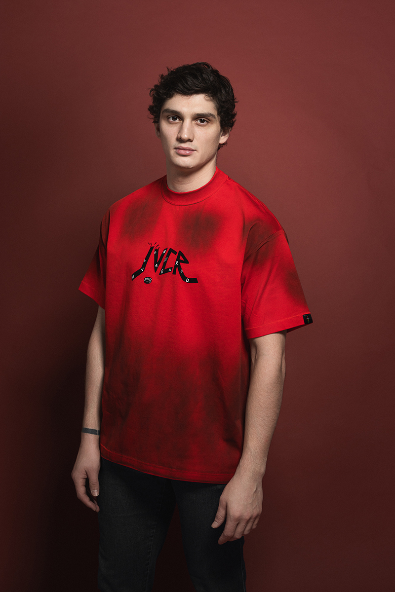 Есть вариант и побрутальнее. Чёрные пятна на этой футболке возникли не потому, что Николай Прохоркин побывал в Нефтяниках — это просто дизайнерское решение.
