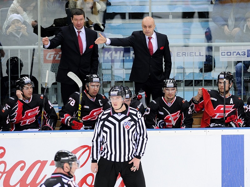 Панов (слева) на тренерской скамейке «Авангарда». Фото: photo.khl.ru
