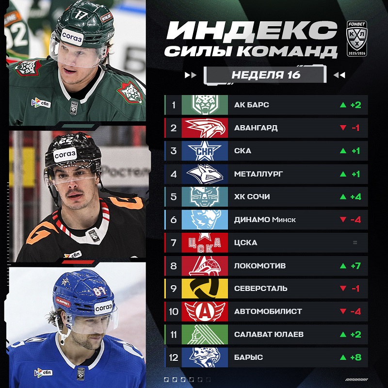 «Ак Барс» возглавил Индекс силы сезона 2025/2026, «Авангард» на втором месте