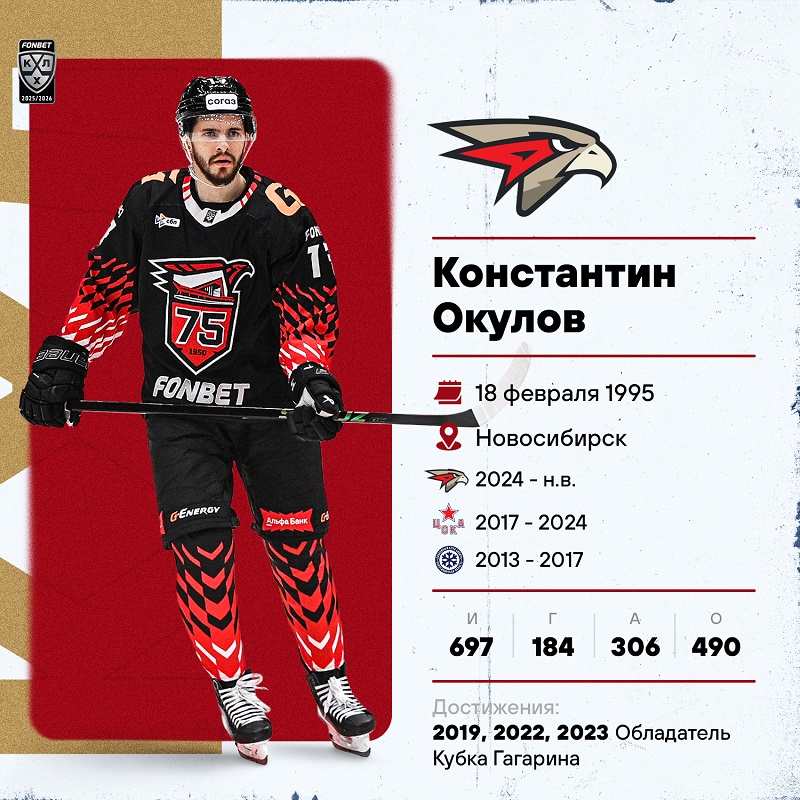 Последний год Константин Окулов проводит в «Авангарде» и чувствует себя великолепно. После обмена из ЦСКА нападающий, выигравший с армейцами три Кубка Гагарина, вмиг стал лидером «ястребов», идеально вписался в систему Ги Буше, затем подписал новый контракт с омским клубом, а в нынешнем сезоне является одним из лучших бомбардиров всего чемпионата.