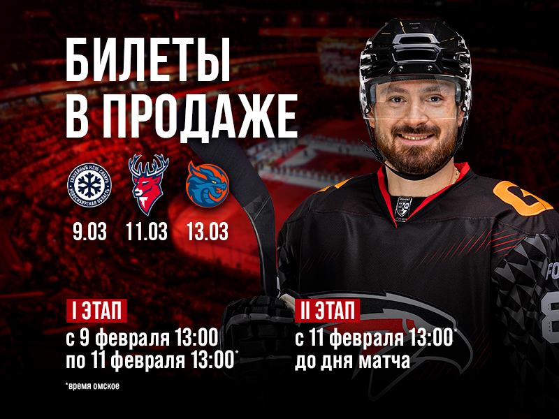 Билеты на игры с «Сибирью», «Торпедо» и «Драконами» будут продаваться в два этапа.