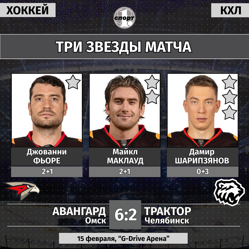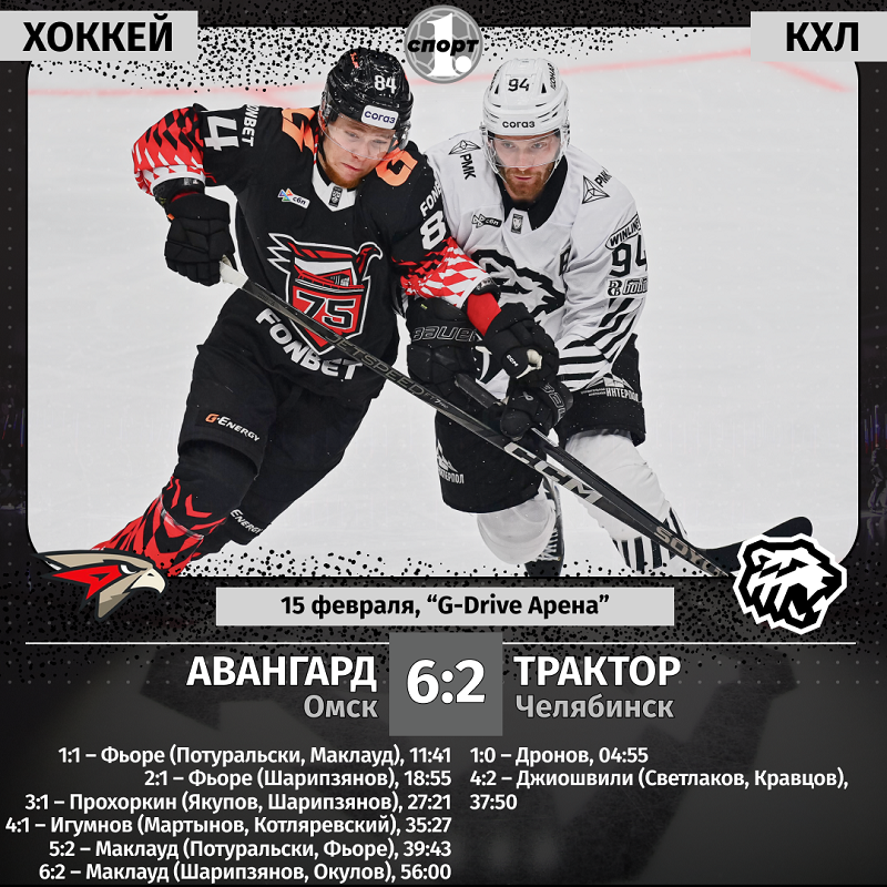 Хоккей. Сезон-2025/2026. Чемпионат КХЛ. 15 февраля. «Авангард» (Омск) — «Трактор» (Челябинск) — 6:2 (2:1, 3:1, 1:0).