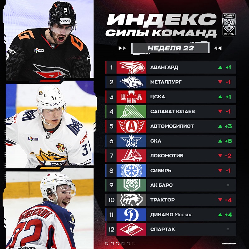 KHL.ru представляет рейтинг самых «горячих» команд по итогам 22-й недели сезона 2025/2026.