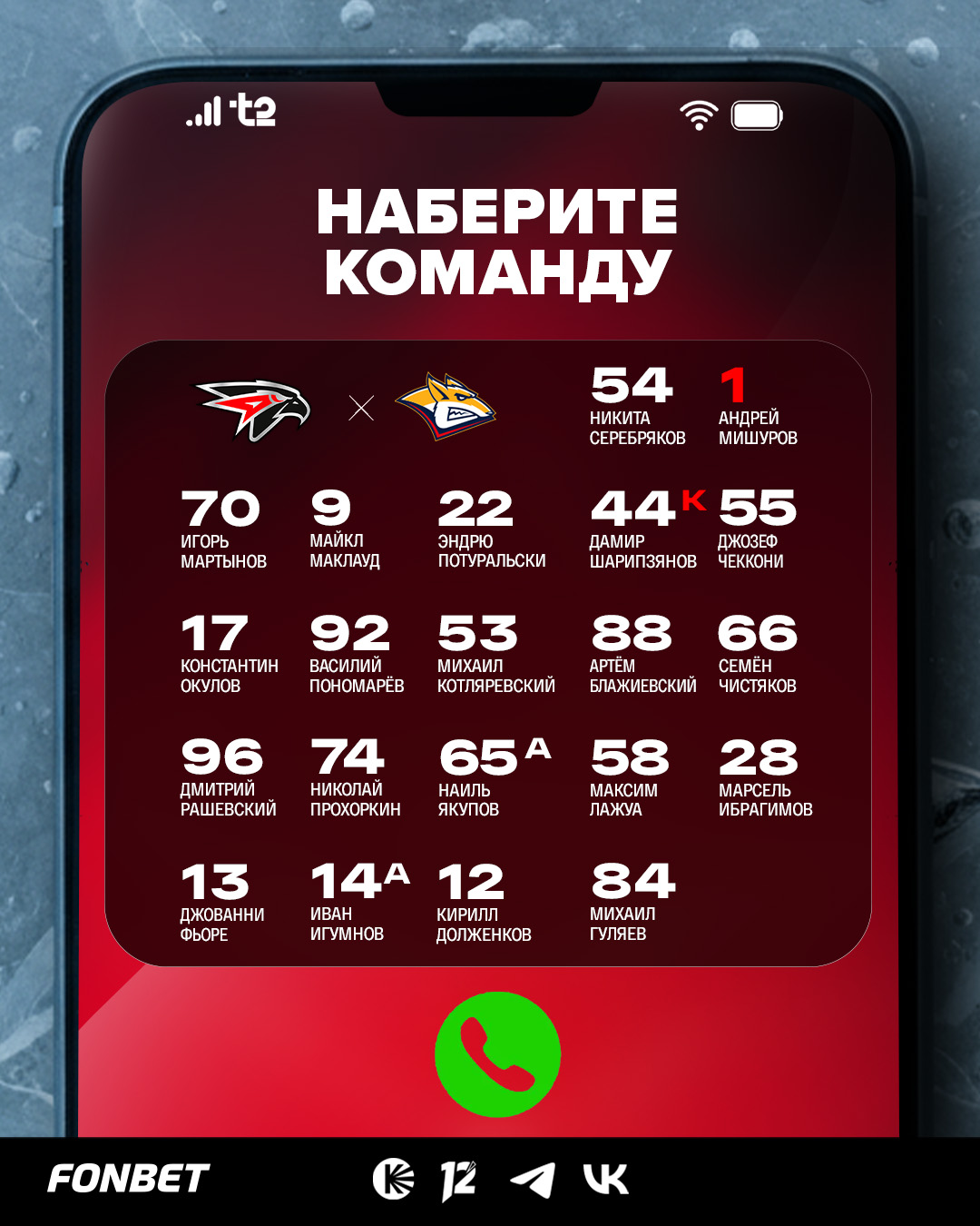 Состав «Авангарда» на домашний матч против «Металлурга»