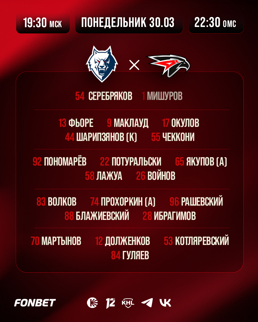 Состав «Авангарда» на четвёртый матч серии против «Нефтехимика»