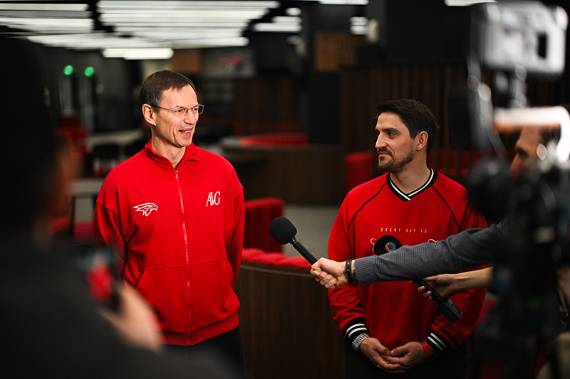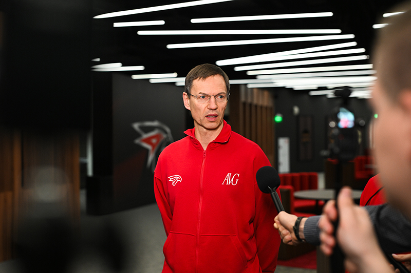 По традиции на вопросы журналистов ответили генеральный директор клуба Герман Чистяков, генеральный менеджер Алексей Сопин, главный тренер Ги Буше, а также нападающие Константин Окулов и Наиль Якупов.