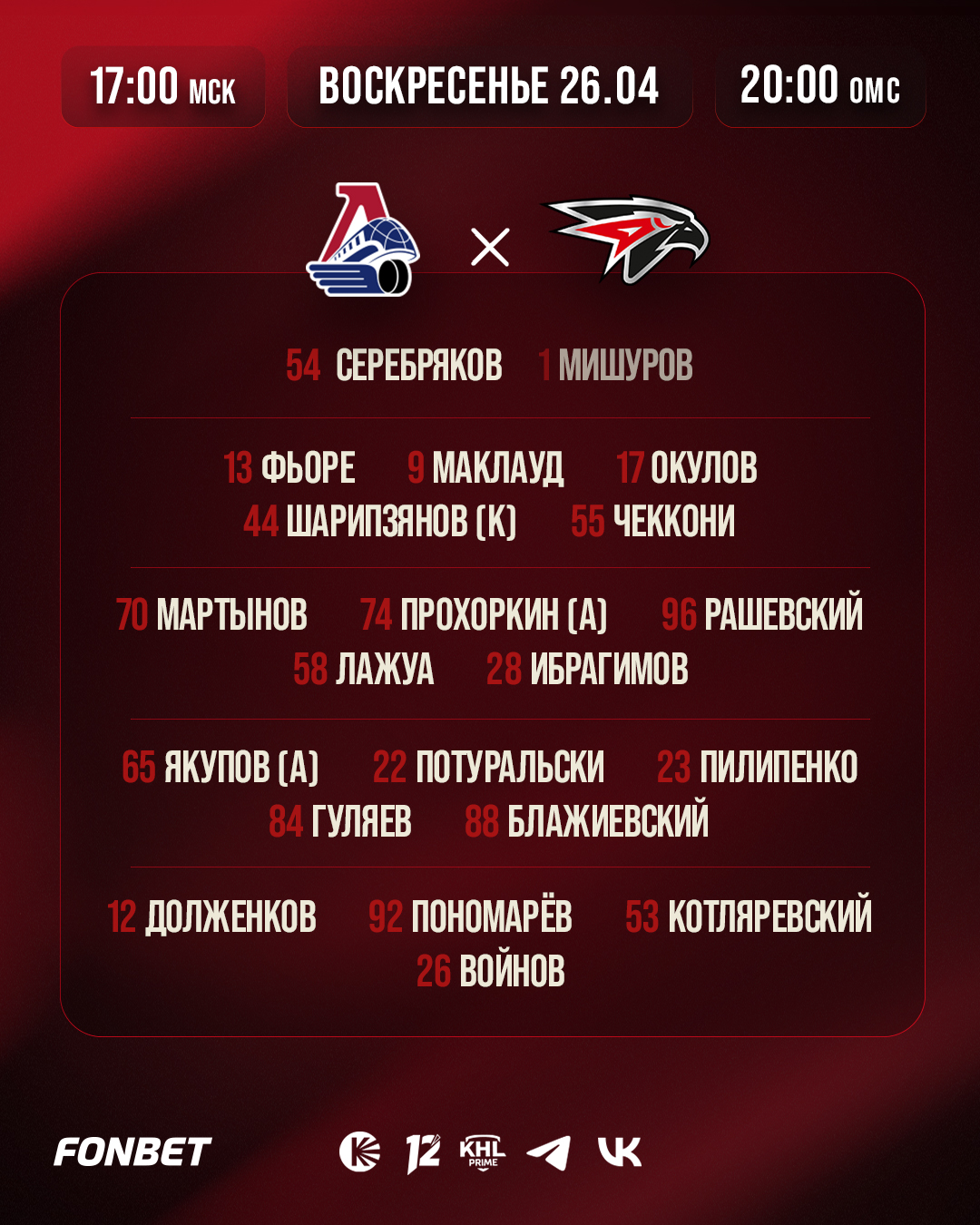 Состав «Авангарда» на второй матч серии против «Локомотива»