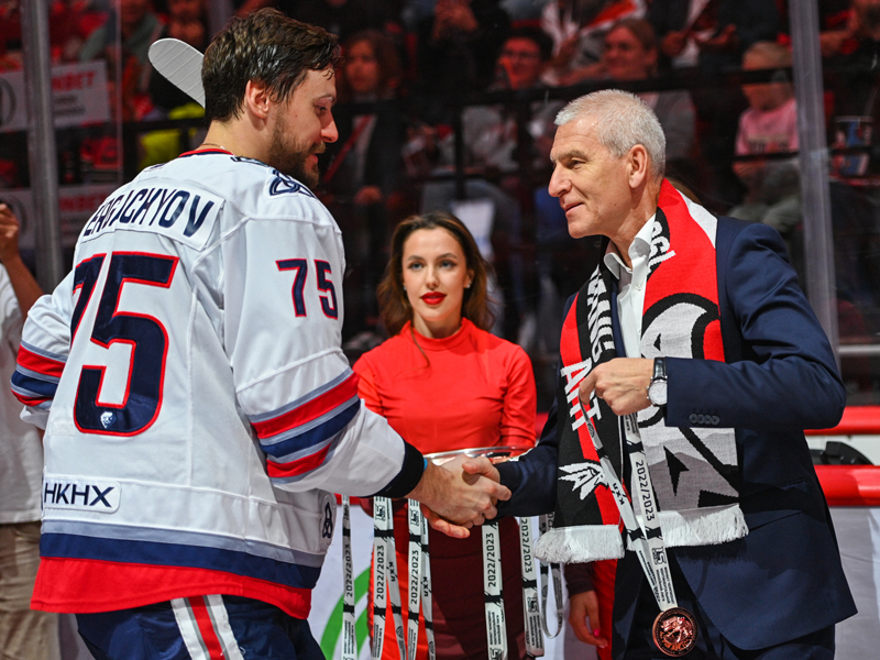 Он вместе с Виталием Хоценко вручил медали «ястребам», которые по итогам сезона 2022/2023 стали бронзовыми призерами Кубка Гагарина. Это Дамир Шарипзянов, Владимир Ткачев, Рид Буше, Василий Демченко, Богдан Киселевич, Зият Пайгин, Семен Чистяков, Иван Телегин, Андрей Мишуров, Никита Михайлов, Егор Круженков, Михаил Гуляев, Сергей Звягин, Александр Свитов, Михаил Кравец и Антон Курьянов.