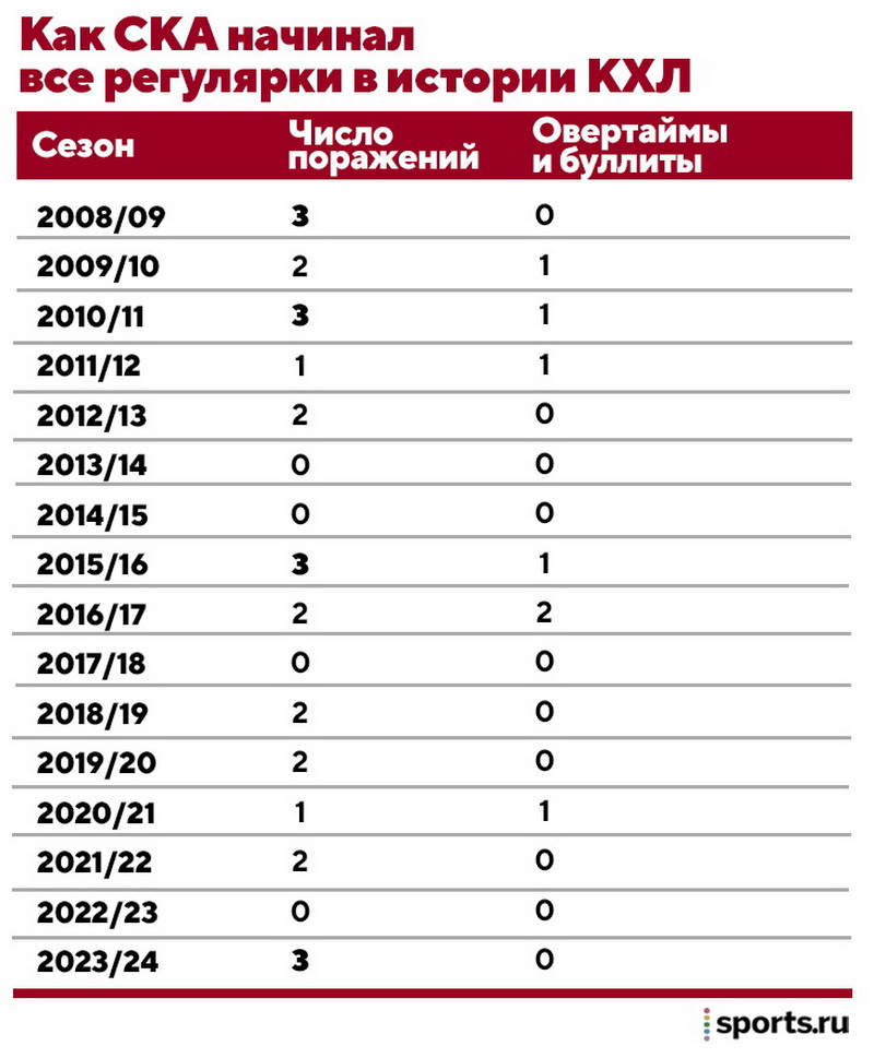 Главное: так плохо СКА начинал только первую регулярку в КХЛ.