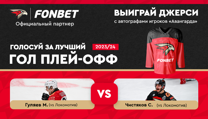 Выбирай лучший гол плей-офф и выиграй джерси с автографами игроков «Авангарда» от Fonbet!