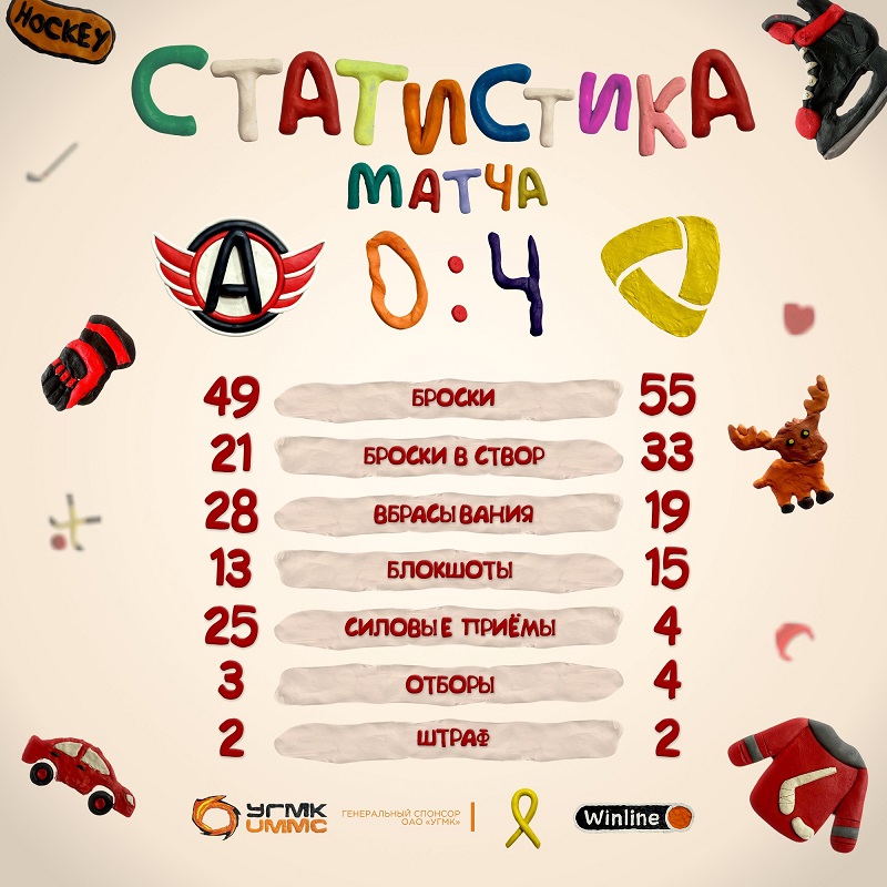 Голы: 0:1 Аймурзин (Смирнов, Грудинин) – 28:17 (5x5) 0:2 Абросимов (Лишка, Чуркин) – 39:59 (5x5) 0:3 Ильин (Аймурзин) – 41:08 (5x5) 0:4 Абросимов – 59:57 (пв)