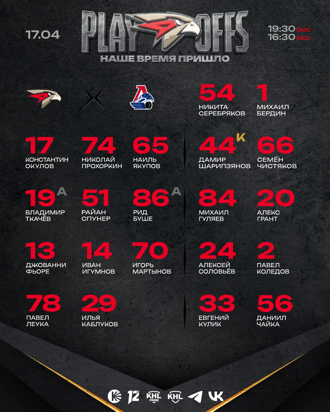 Состав «Авангарда» на четвёртый матч серии против «Локомотива»