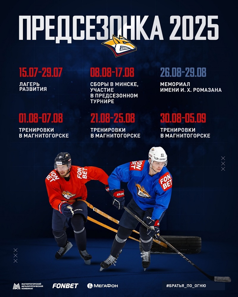 С 30 августа по 5 сентября «Металлург» продолжит готовиться к новому сезону, который стартует 5 сентября. Первую игру регулярного чемпионата-2025/2026 магнитогорский клуб сыграет 6 сентября с «Ак Барсом».