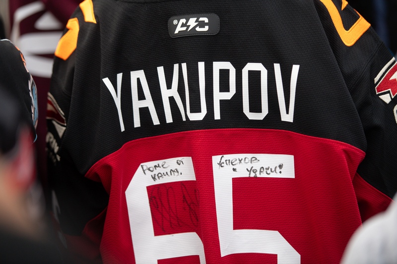 Один из болельщиков купил оригинальный игровой свитер Якупова с его автографом, за что получил доступ на автограф-сессию нападающего нашей команды без очереди.