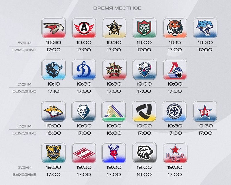 Континентальная хоккейная лига опубликовала время начала домашних встреч для каждой из команд в сезоне-2025/2026.