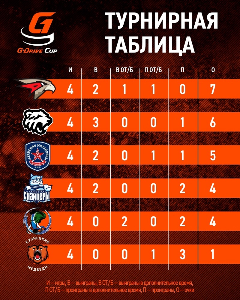 Последние матчи турнира команды сыграют 7 августа. «Кузнецкие Медведи» встретятся с «Мамонтами Югры» в 7:00 мск. «Академия Михайлова» сыграет с «Омскими Ястребами» в 15:00 мск.