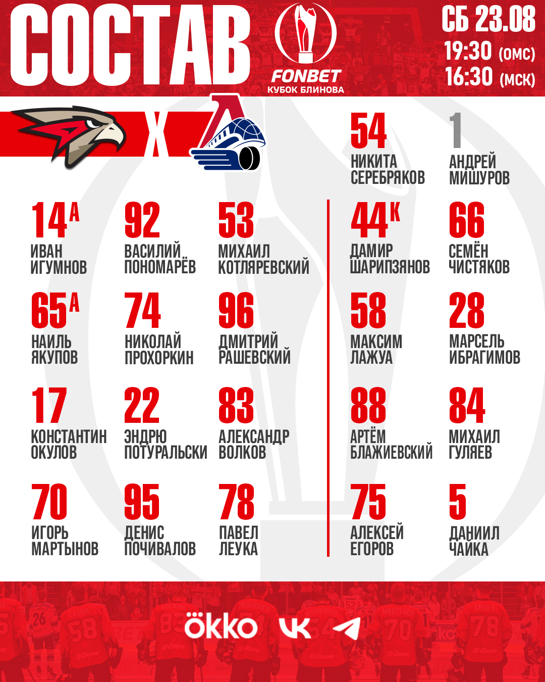 Тренерский штаб «Авангарда» определился с составом на матч предсезонного турнира FONBET Кубок Блинова против ярославского «Локомотива».