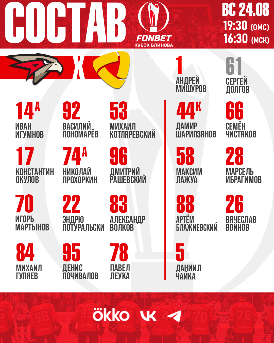 Начало встречи на G-Drive Арене в Омске в 19:30 по омскому времени (16:30 по московскому времени).